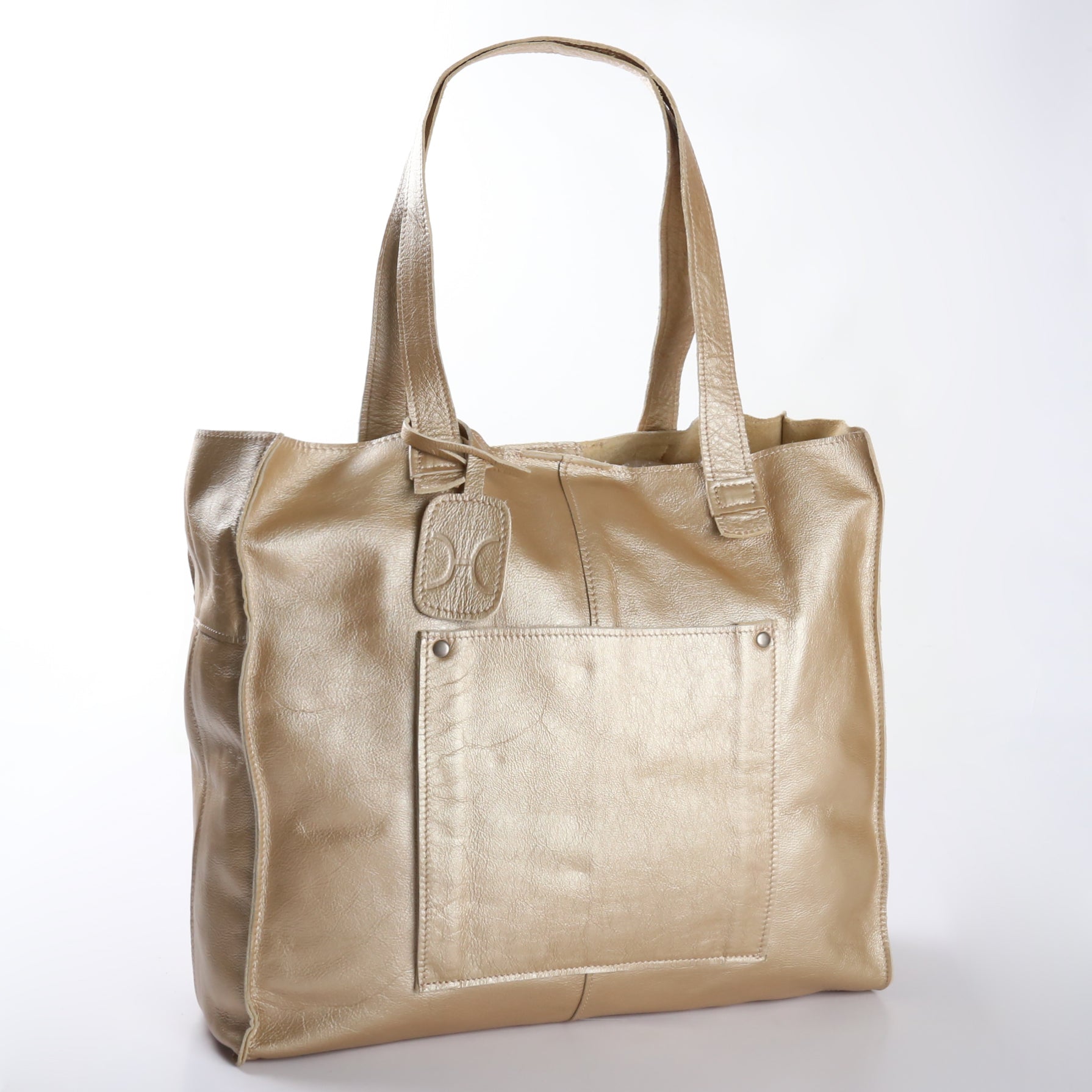 Whether heading to work, out for an evening or travelling, the Metallic Leather Tote brings a touch of glamour to any occasion. Its ample storage and distinctive look make it an essential accessory for the fashion-forward.